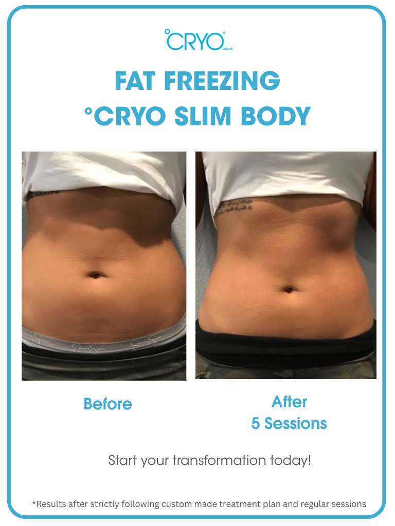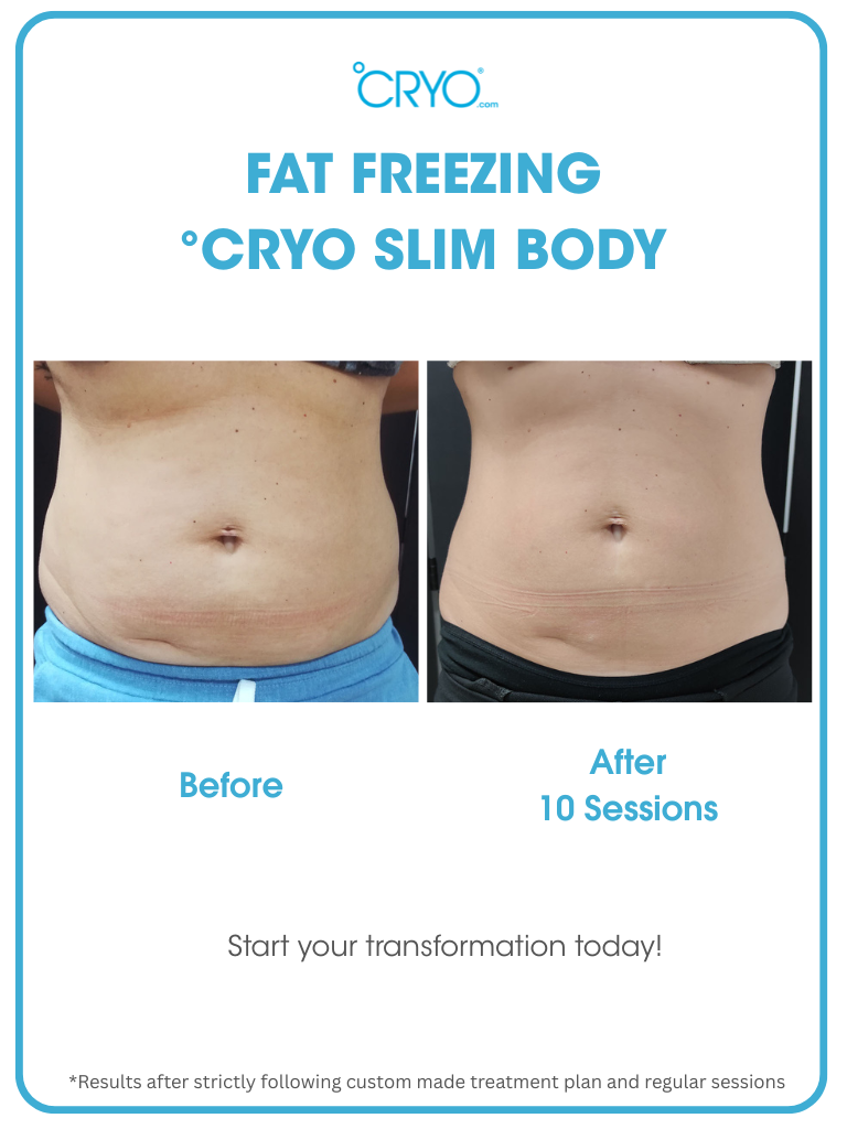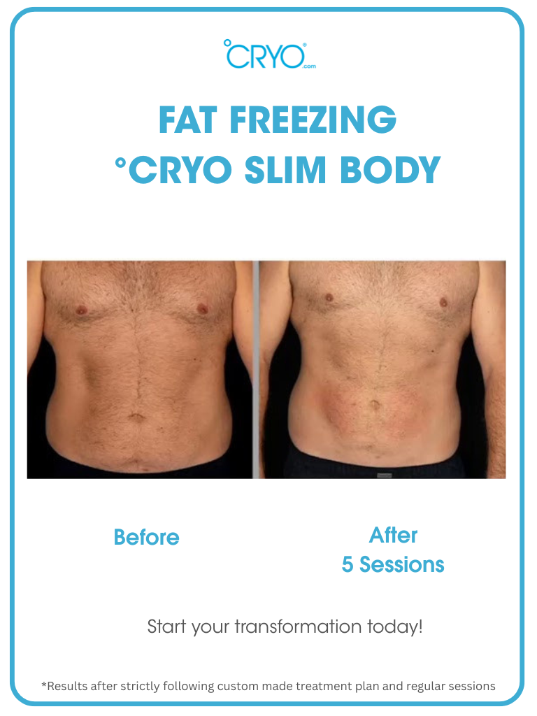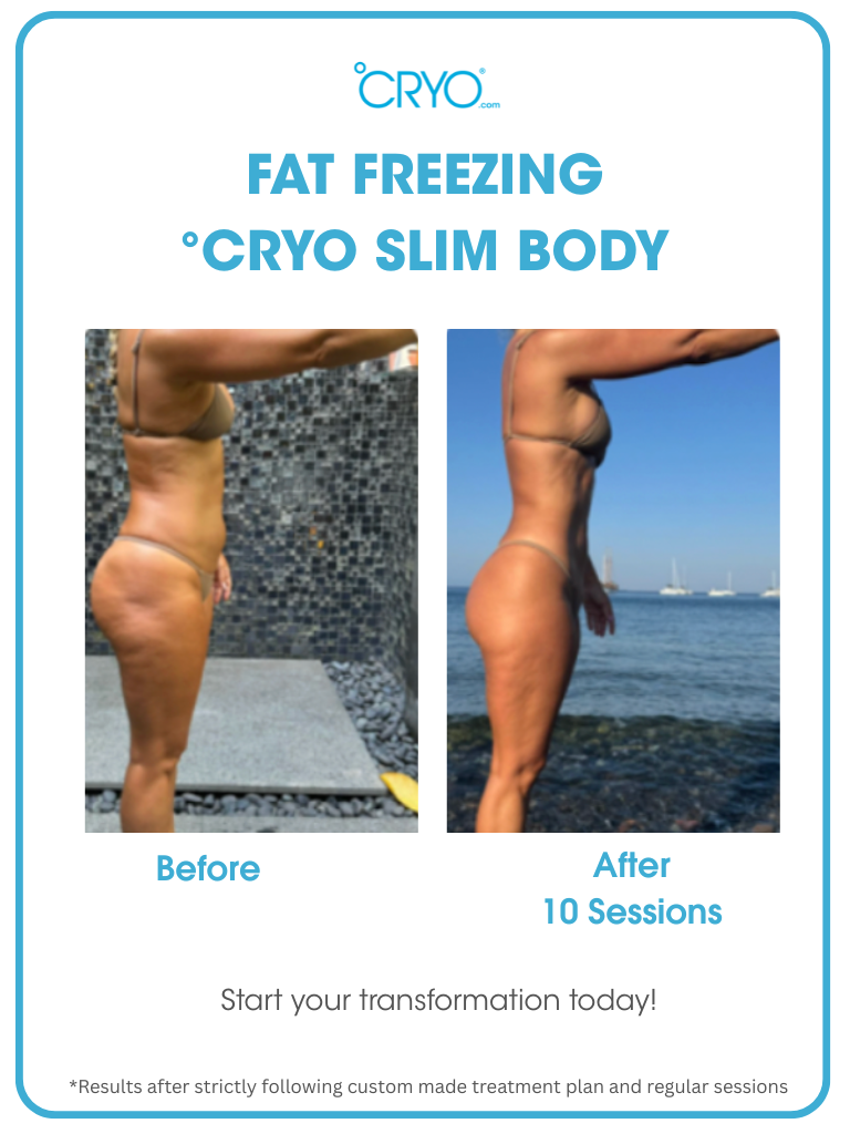 Tired of stubborn fat that just won’t budge with diet and exercise? Drop a pant size with our °CRYO Slim Body treatment that uses advanced contrast cryolipolysis technology (controlled cooling & warming) to freeze and crystalize fat cells naturally — without surgery or downtime.