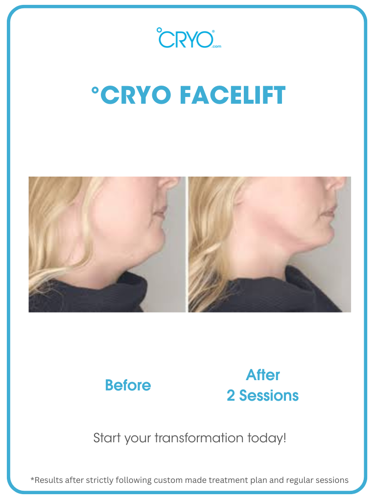 Say goodbye to sagging skin, puffiness, and double chin. Our °CRYO FaceLift uses advanced cold therapy to: